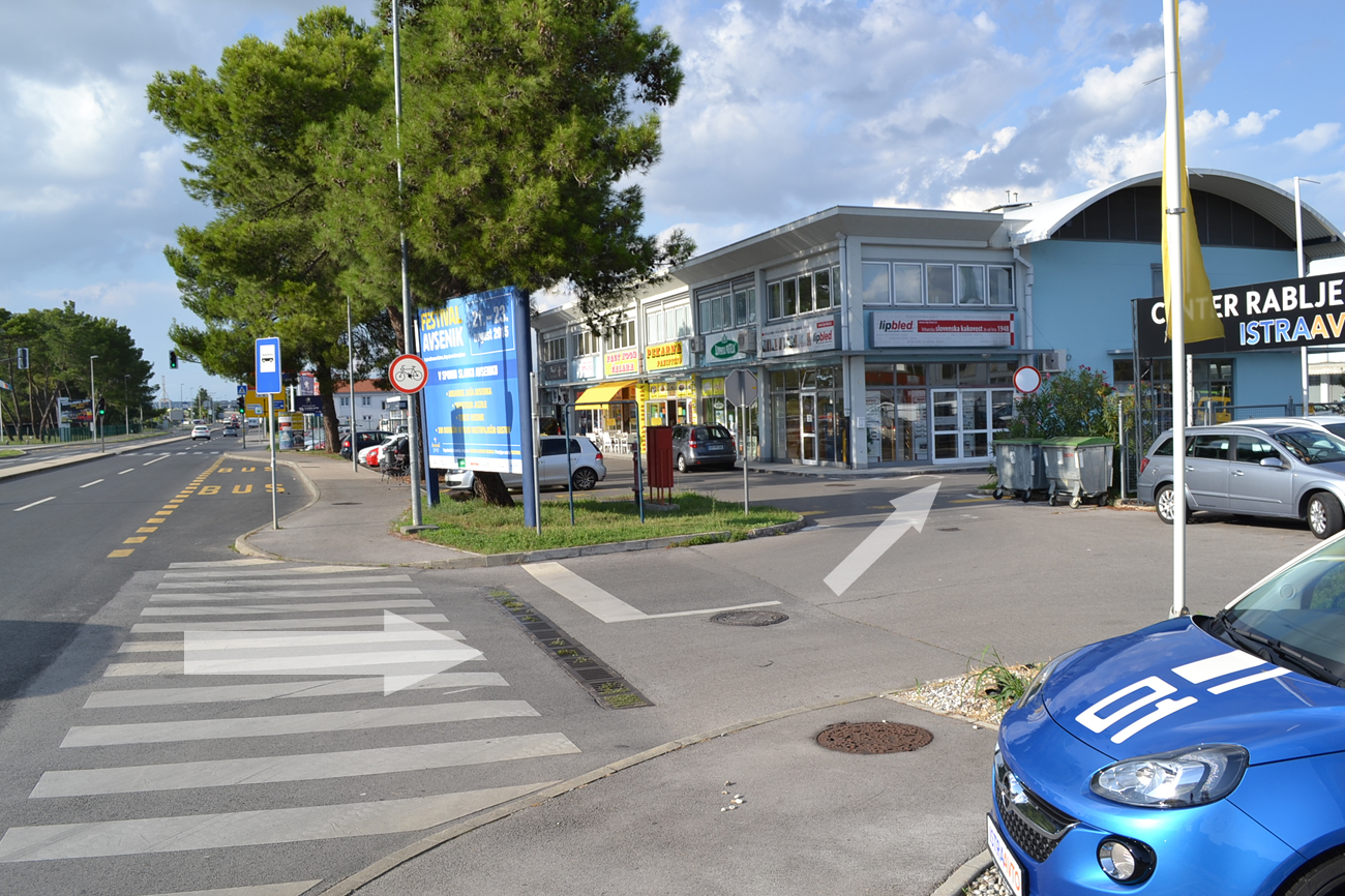Po 150 metrih izberite drugi izhod (za trgovino Opel) in parkirajte na prostih parkiriščih.